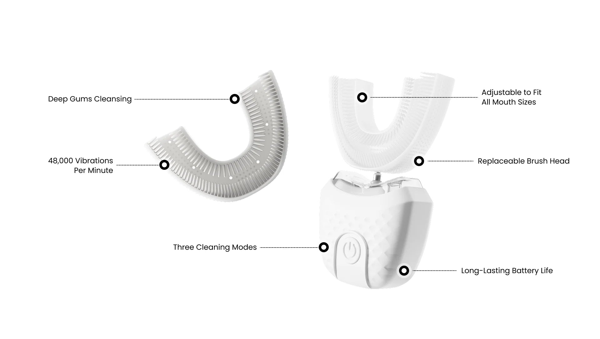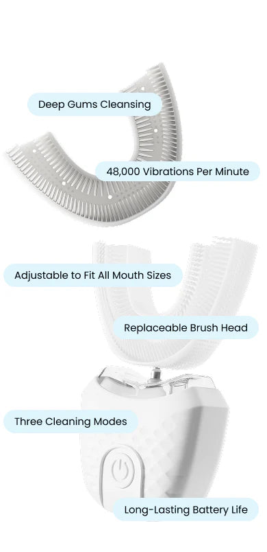 360° Mouthpiece for Total Coverage — reaches every tooth from all angles at once, removing plaque more effectively than a regular toothbrush.